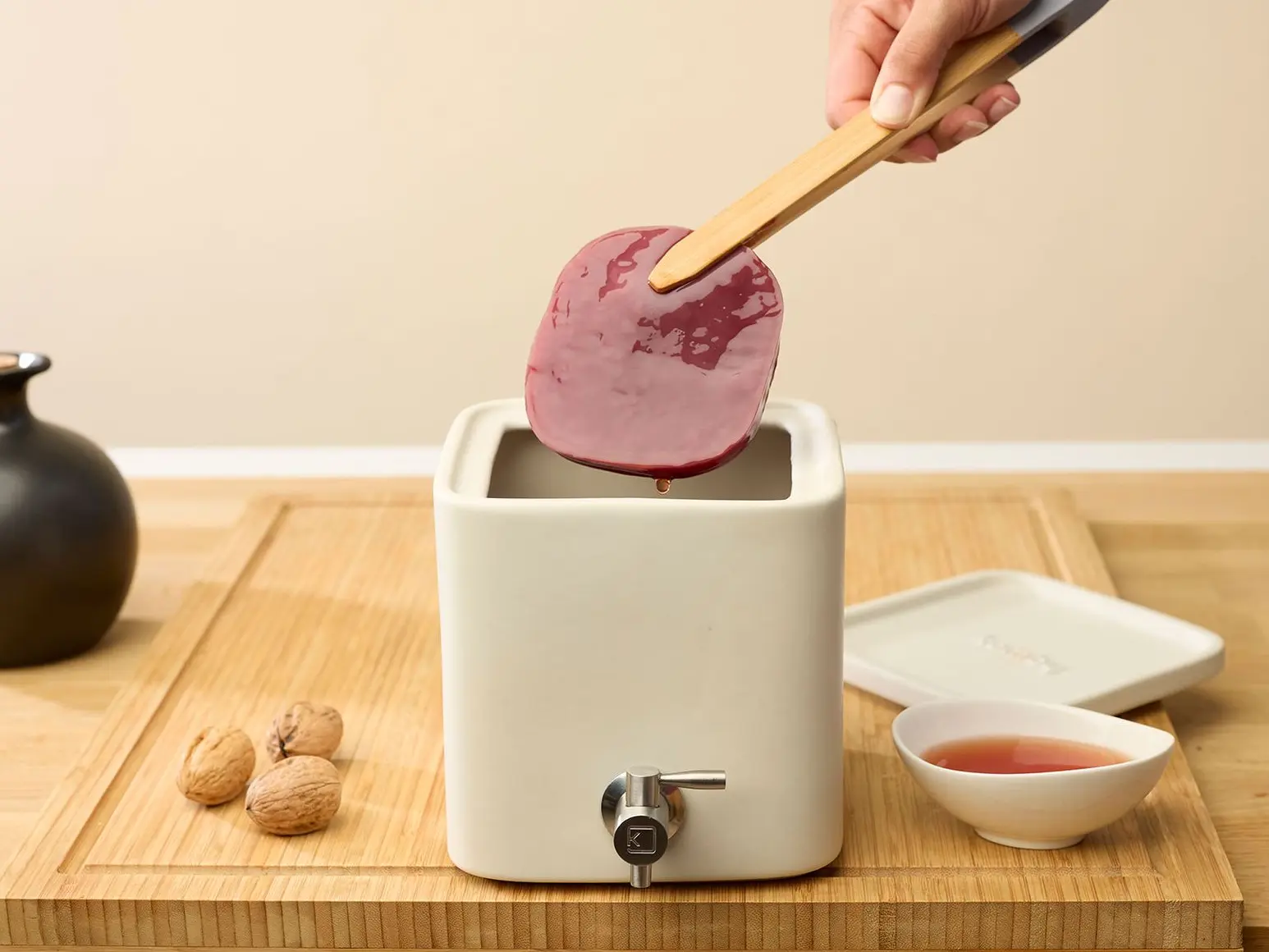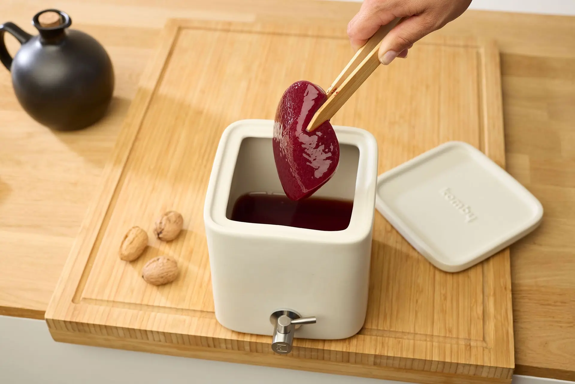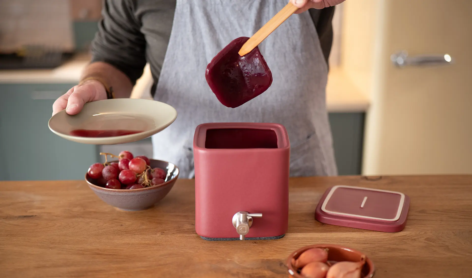 Un contenant en grès, empilable, pratique et sain pour réussir facilement votre vinaigre artisanal.
